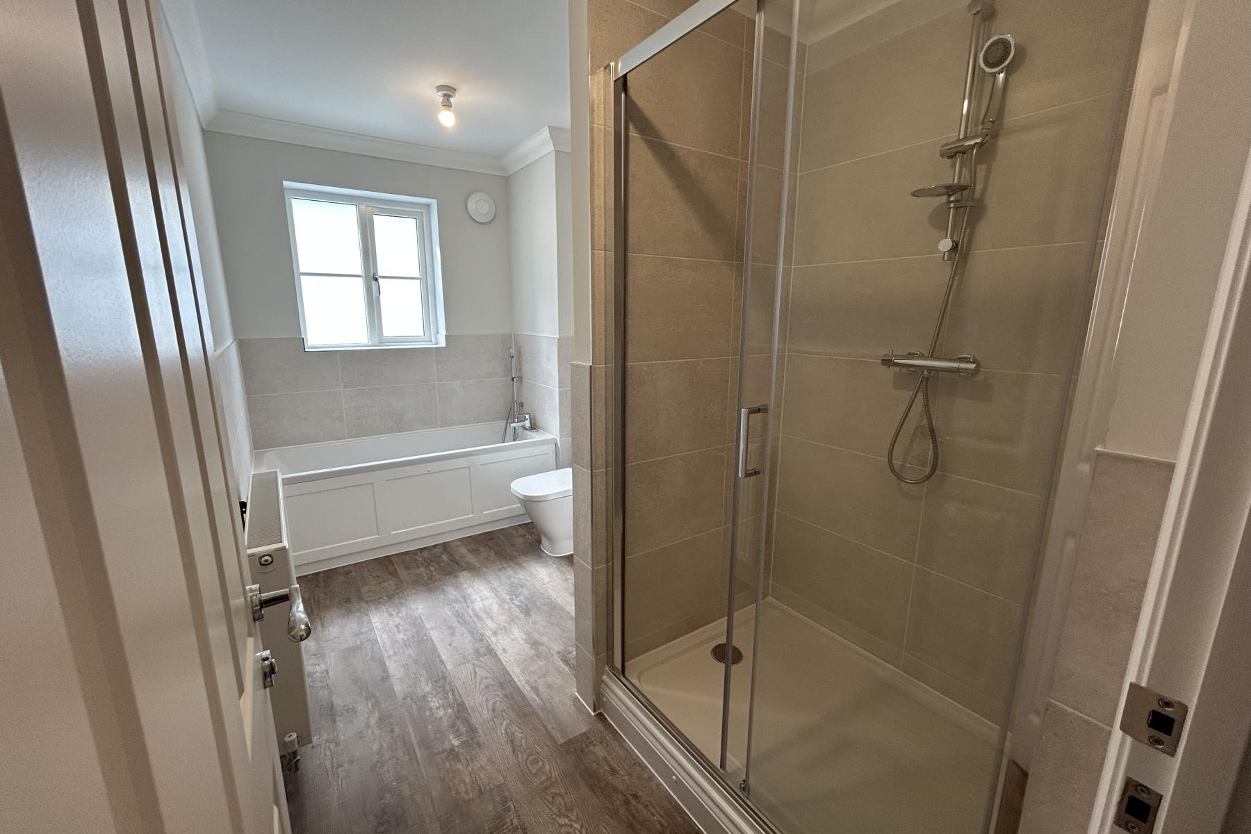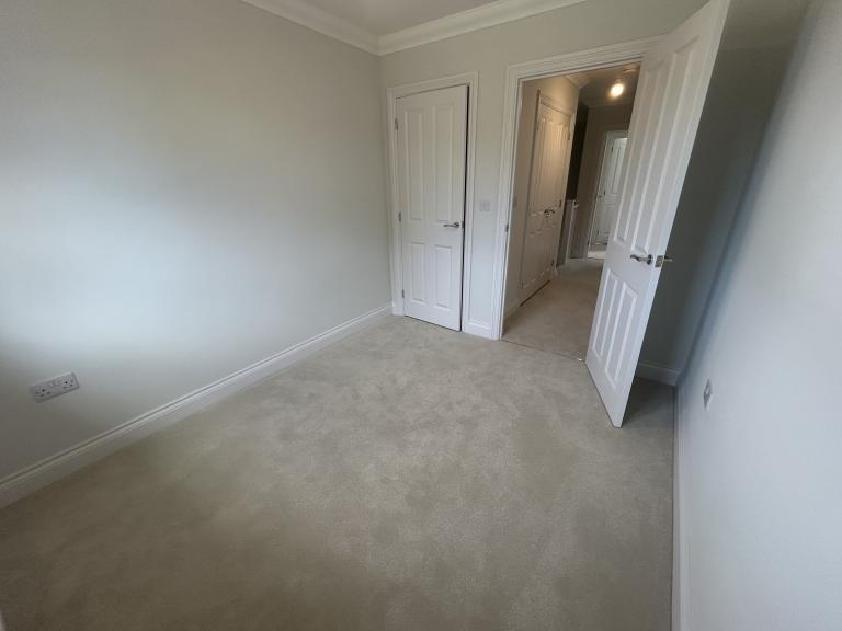 Plot 16 is a spacious 3 bedroom detached property, complete with 2 parking spaces. Upon entering the property, the hallway gives way to the living room, which is located to the front of the property, the W/C and the kitchen. Within the hallway is ample storage, with an under stair cupboard, and additional double cupboard. Double doors take you from the living room to the kitchen and dining area, and French doors lead you to the West-facing garden. Upstairs are three rooms, two double bedrooms and a study, which could be used as a further bedroom. All three rooms feature built in wardrobes, and the master bedroom also features an en-suite.