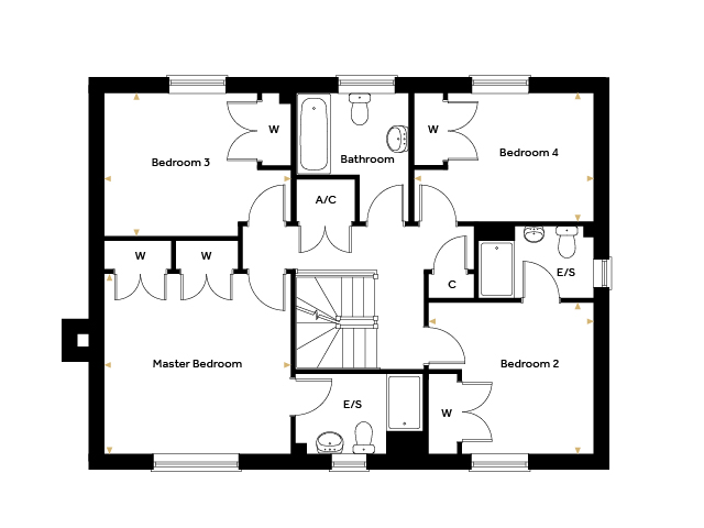 Plot 5 is a large, 6-bedroom family home boasting over 2,000sqft across three floors. The hallway gives access to the living room, kitchen/dining area, study and W/C. The living room, which is located at the front of the property, includes a feature fireplace, with Hunter Herald woodburner. Double doors lead you from the living room to the family area and kitchen/dining area. There are French doors inviting you into the West-facing garden from the dining area. The kitchen includes integrated Bosch fridge/freezer and dishwasher, and granite or quartz worktops. Downlights are also included in the kitchen, dining area, and family area. There is a separate utility located off the kitchen. Back through to the hallway from the kitchen, the W/C includes downlights. The first floor is where four of the six bedrooms are located. All bedrooms in this floor include built in double wardrobes, and the master bedroom and bedroom 2 feature an ensuite. The family bathroom is also located on this floor. The remaining two bedrooms are located on the second floor. All wet rooms in this property include downlights. Outside, this property comes with an electric vehicle charging unit.