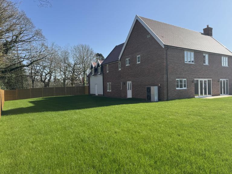 Upon entering the home, the L shaped hallway gives access to the living room, kitchen/dining area, W/C and family room. The kitchen features ample natural light, with a large window and French doors that provide access to the L-shaped garden. Included within the kitchen/dining area are downlights, quartz worktops and integrated Bosch fridge/freezer and dishwasher. Located off the kitchen is also a separate utility which includes downlights. The living room, which can also be accessed from the kitchen through double doors, features French doors to the garden, and an Inglenook fireplace with a Hunter Herald woodburner and oak beam. Upstairs, the master bedroom is of very good size, with two double fitted wardrobes, an en-suite, and private study which could be used as a dressing room. Bedroom 2 also includes a double fitted wardrobe an ensuite. The W/C, family bathroom and both en-suites include downlights. This property comes with an integral double garage, which includes a personnel door giving access to the garden.
