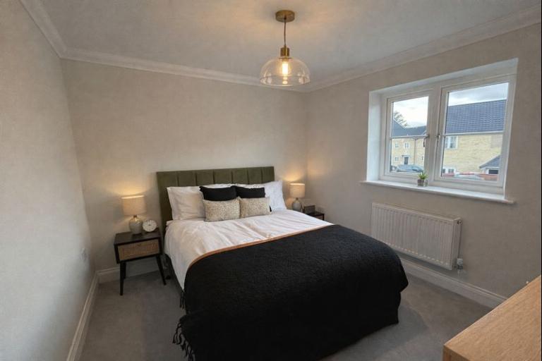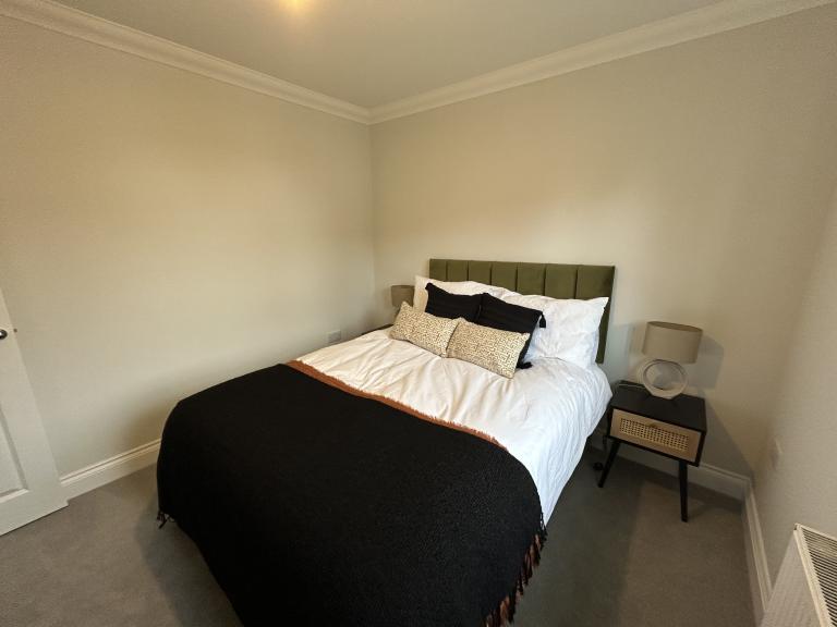The kitchen/dining area is open plan, with French doors leading you to the garden. Upstairs, both bedrooms are doubles, and the master features an ensuite. Bedroom 3 could be used as a study or playroom. This property comes with 2 parking spaces.