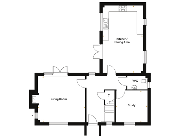 Plot 13, The Sandpiper, is a large L-shaped house with garage and parking located on a corner towards the front of the development.