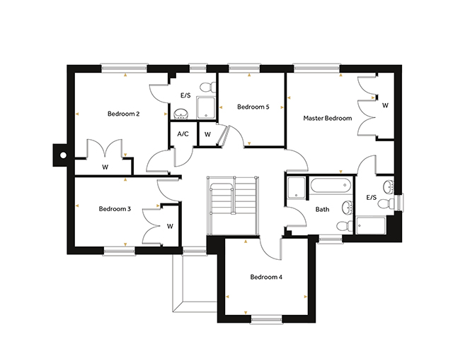 Upstairs, five spacious bedrooms provide ample accommodation, including two with luxurious en-suite bathrooms and three with built-in wardrobes. The family bathroom, en-suites, utility, and W/C are all enhanced with stylish downlighting, underscoring the home’s attention to detail and quality finishes.